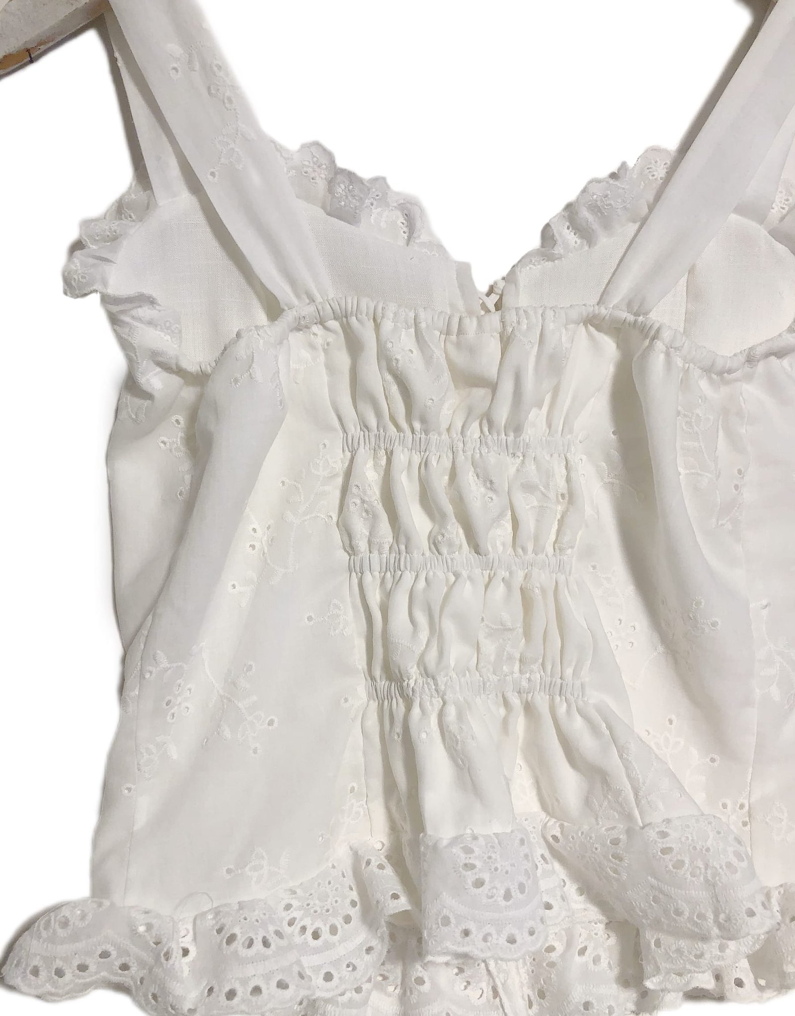 Una joya atemporal bordada en brodery blanco con alma romántica. Piezas limitadas